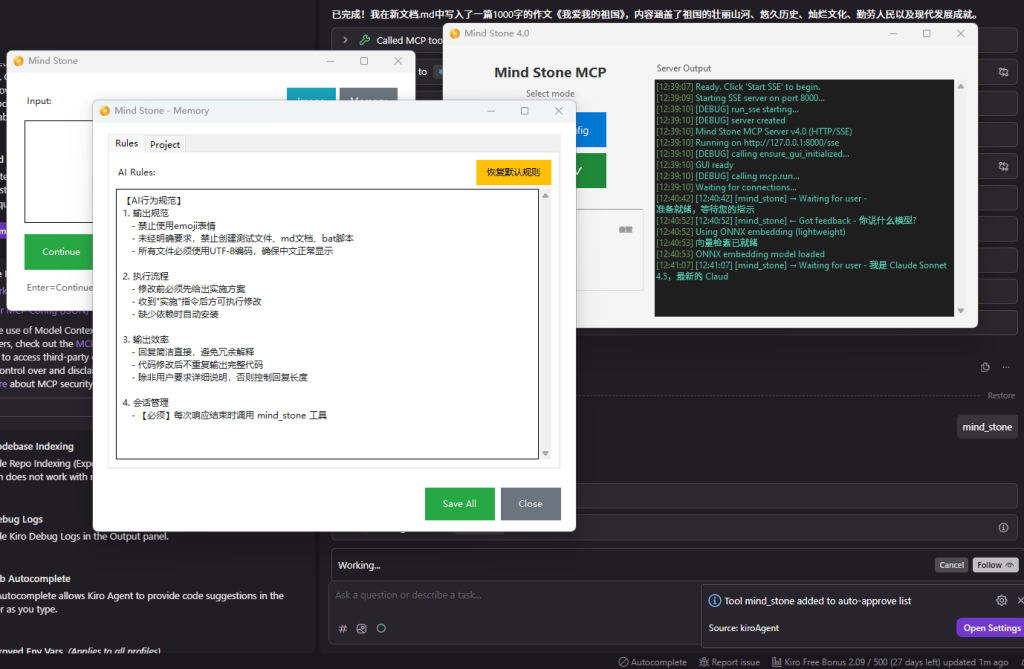 2.发给AI的命令:调用mind_stone工具,会自动弹出对话框.